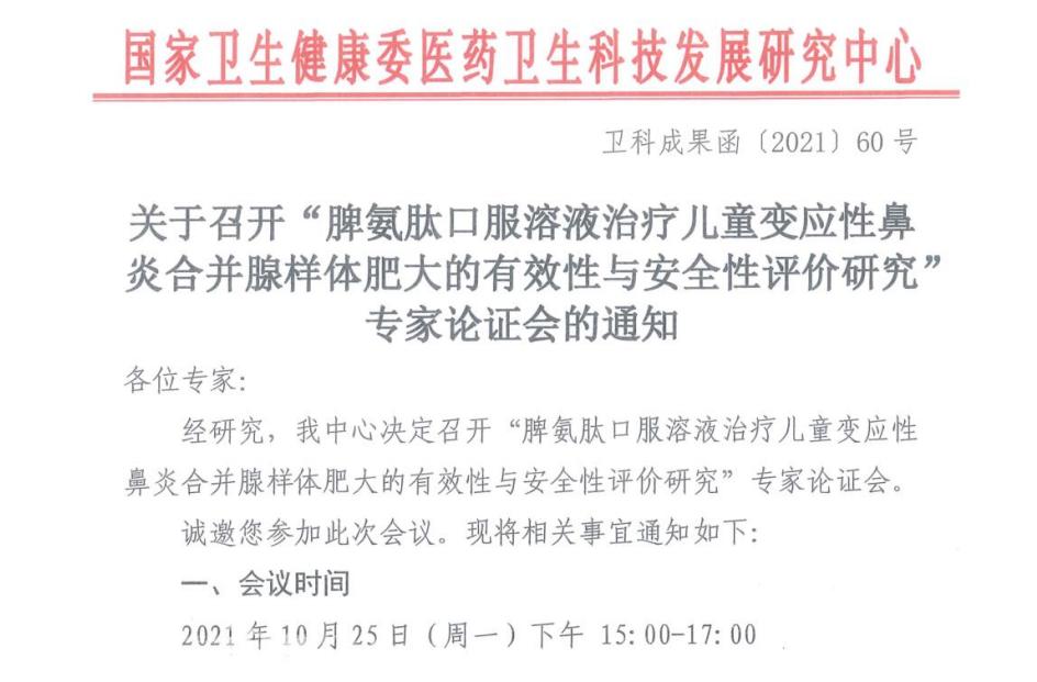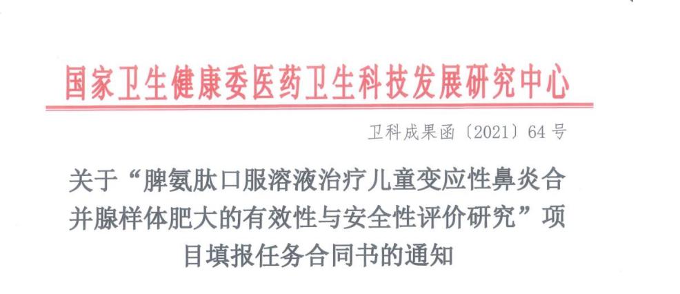 腺样体肥大是小儿耳鼻咽喉科常见病和多发病,容易导致儿童鼻阻、夜间睡眠时打鼾、张口呼吸、憋醒、呼吸暂停等,严重者可引起颌面发育障碍,从而出现腺样体面容、生长发育迟缓、神经行为障碍、心血管疾病等。然而,腺样体属于咽部淋巴内环的一个主要组成部分,它在生命早期促进免疫系统的发育,以抵抗吸入性微生物,在细胞免疫、体液免疫中发挥关键性作用。儿童的腺样体生理性肥大可部分遮盖后鼻孔,通过黏附、过滤、缓冲,对气道起保护作用,而病理性肥大会部分或完全阻塞后鼻孔,造成鼻腔阻塞,导致微生物在鼻腔内聚集,从而引起鼻腔炎症反应。目前,腺样体肥大的发病机制尚不清楚,近年来也有研究提示各种引起变应性疾病的变应原也是腺样体肥大的重要危险因素,在本病的防治过程中需重视变应性因素所致的病因。此外,也有大量研究证实,腺样体肥大患儿大多合并患有过敏性鼻炎,对于腺样体肥大合并过敏性鼻炎的儿童多建议手术切除肥大的腺样体,但腺样体亦是免疫器官,并且通常情况下手术切除需要在全身麻醉下行腺样体切除术,也存在麻醉风险和手术并发症等问题。因此,期待能够为儿童过敏性鼻炎合并腺样体肥大患儿的药物治疗提供更多新的思路,国家儿童医学中心-复旦大学附属儿科医院许政敏教授团队开展脾氨肽口服溶液治疗儿童过敏性鼻炎合并腺样体肥大的相关研究。这项采用记录、分析患儿鼻涕情况、咳嗽、打鼾、睡眠暂停、张口呼吸等主观症状 , 以 及 患 儿 腺 样 体 - 鼻 咽 腔 比 率 (A/N 比 值 ,Adenoidal/Nasopharyngeal Ratio)和后气道间隙值(PAS 值 posteriorairway space )客观指标,评价脾氨肽口服溶液治疗 AR 合并腺样体肥大的近期和远期疗效。