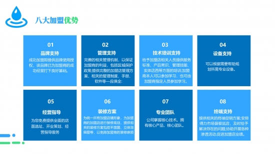氢医美还有有一整套全流程跟踪服务,0 元加盟,我们提供广告、培训、门店运营、技术支持等多样化的帮扶支持,派出导师团队亲下店辅助销售和宣传,提升店铺日常销售额,而销售业绩增长的同时,也利于氢医美集团加盟终端标准化的落地与执行。与此同时,氢医美集团打造超级终端线上平台,通过此平台,全方位打通集团总部与全国千城万店加盟商的资源输出通道,实现线上线下销售转化。