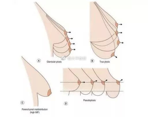 联合丽格第一医院杨大平教授考虑到雷诺分类并不是很细致,不同程度的乳房下垂手术方案用雷诺分类无法做出精确的规划,临床上对下垂开始采取一种新的分类: