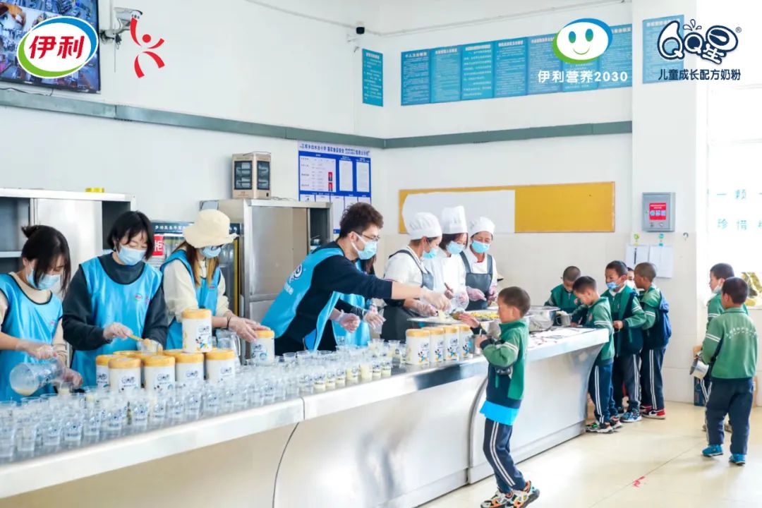 此外,在本次公益活动中,来自不同岗位的伊利员工成为了一道亮眼的风景线——品牌代表换下了笔直的西装,穿上运动服和孩子们在篮球场上同场竞技;设计师把作品从电脑里“搬”到了学校斑驳的墙壁上,和孩子们一起“刷”新梦想;00后年轻员工,以“大姐姐”的身份和孩子们玩在一起;产品研发开展了一场“奶味十足”的科普社团活动,教孩子们如何冲泡奶粉;午餐时,伊利员工们还为孩子们冲泡QQ星榛高儿童奶粉,帮助他们补充营养。他们用实际行动体现了每个伊利员工都是公益的“践行者”,为山区的孩子们带去关爱与温暖。