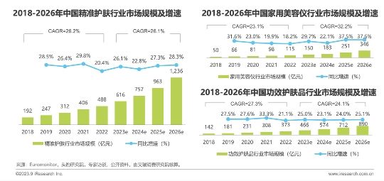 由新华网、艾瑞咨询与AMIRO觅光联合发布的《2023年精准护肤趋势报告》(以下简称《报告》)显示,在市场、技术、需求等多方因素驱动下,精准护肤行业正在迎来加速发展,预计2023年中国精准护肤行业市场规模将达到616亿,2026年或将突破千亿大关。