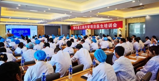 “三高共管”关键在于强基层,基层医生作为我们防控第一战线的人,不断的提高诊疗水平和管理水平是关键。为了促进循化县“三高共管”一体化慢病管理能力提升,循化县三高共管项目医生培训会暨循化基层医生技能提升培训班” 2023年8月18日在循化县国际饭店举行,会议邀请到青海大学附属医院樊世明教授、任明教授、王卓亚教授进行授课,循化县人民医院党委书记祁晓宝以及循化县各级乡镇医生、村医共150人参加了此会议。