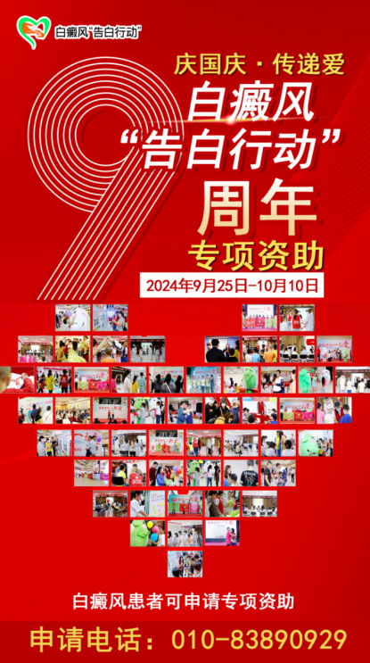 为把爱心献给更多白癜风患者,带去希望与温暖,得到及时专业有效治疗,从源头更快摆脱白癜风困扰,早日重归正常生活,白癜风“告白行动”以“庆国庆·传递爱”为主题的白癜风专项资助持续进行,活动期间,白癜风患者经申请可享白癜风检查、治疗、药费等专项资助。