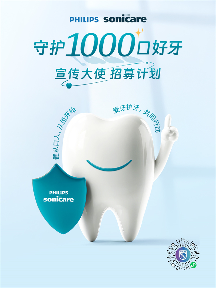 分享有礼!即日起至4月30日,前往飞利浦健康生活小程序报名加入#守护1000口好牙 全民计划,有机会抽取敏牙守护好礼。