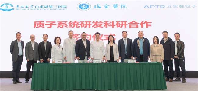 2025 年 4 月 25 日,吉林大学中日联谊医院(以下简称“吉大中日医院”)院长刘林林、副院长高宇飞、副院长刘俊志、放射治疗一病区主任程光惠等一行六人共赴上海,与上海交通大学医学院附属瑞金医院(以下简称 “瑞金医院”)、上海艾普强粒子设备有限公司举行质子系统研发科研合作框架协议签约仪式。瑞金医院院长、中国工程院院士宁光教授,医学影像先进技术研究院院长陈海涛,放射治疗科主任陈佳艺以及联和投资副总裁、艾普强董事长兼总经理孙曦东、艾普强总工程师张满洲等领导专家出席活动,三方就深化质子治疗技术临床转化、平台创新及设备应用达成战略合作共识。