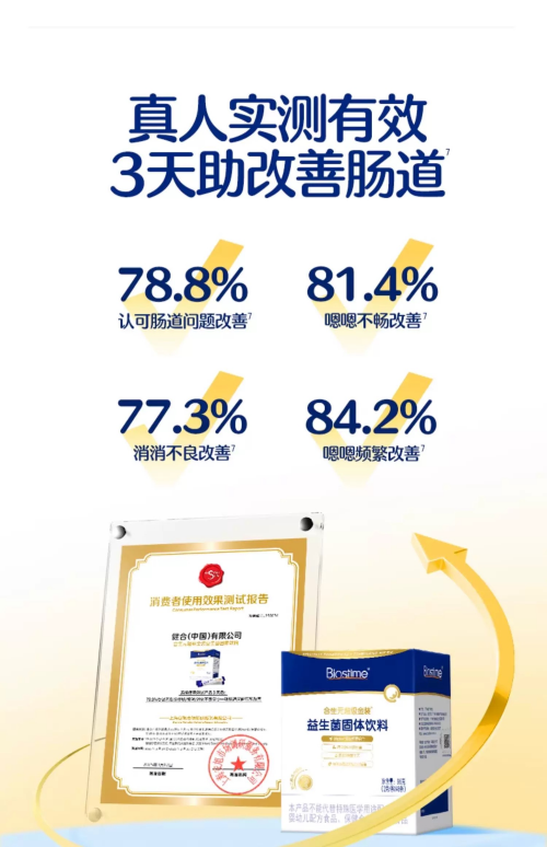肠道健康是孩子茁壮成长的根基,而不同菌株对肠道的作用各有侧重。合生元超级金装益生菌打破传统单一菌株模式,创新采用,双歧杆菌组合Bifiplus™配方,精选九大菌株,构建起多层级的肠道养护矩阵。