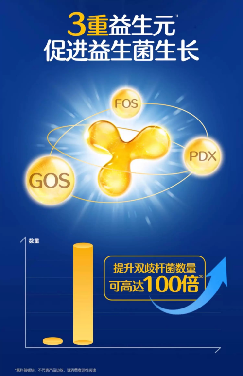 益生菌要在肠道“安居乐业”,离不开益生元的支持。全新合生元超级金装益生菌添加GOS、FOS、PDX三重益生元组合,就像为益生菌打造的“营养供给库”。它们能促进益生菌生长、繁殖,帮助建立更稳定的肠道微生态环境。实验数据显示,连续补充后,双歧杆菌数量可提升高达100倍。当肠道内有益菌占据优势,抑制有害菌,孩子的肠道健康自然更有保障。