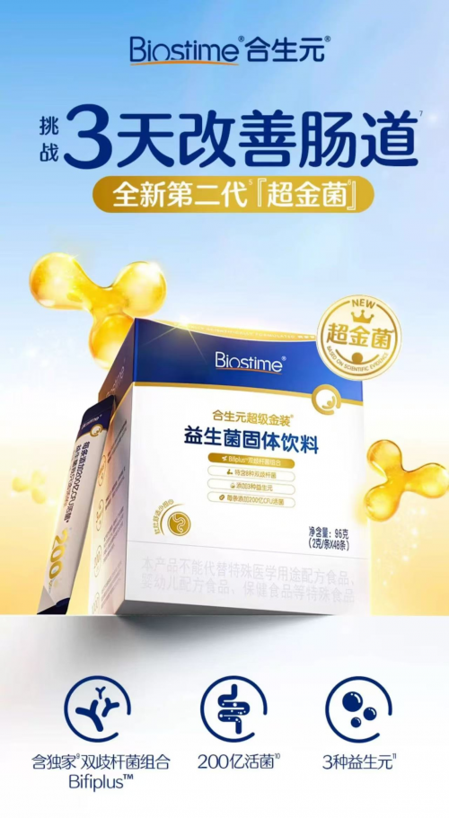 与传统益生菌产品调理周期漫长、效果难以量化不同,合生元超级金装益生菌借助 Bifiplus™,双歧杆菌组合,针对各种肠道问题提供精准改善方案。