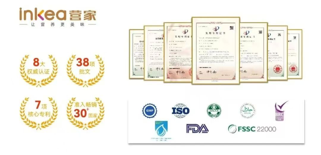 25年科研与制造的坚实底座: 营家健康已建立覆盖粉剂、片剂、软胶囊、硬胶囊、营养棒五大剂型的全链路生产能力,并取得GMP、HACCP、ISO、HALAL、BRC、FDA、FSSC22000及欧盟水产证等8项国际权威认证及涵盖补充能量类、速度力量类、运动后恢复类、耐力类、补充蛋白质类、控制能量类在内的运动营养全类别资质,成为业内少数具备运动营养全类别生产许可的企业之一 。我们以 “科研级配方 + 制药级标准”,确保从原料到成品每一环节的品质稳定。