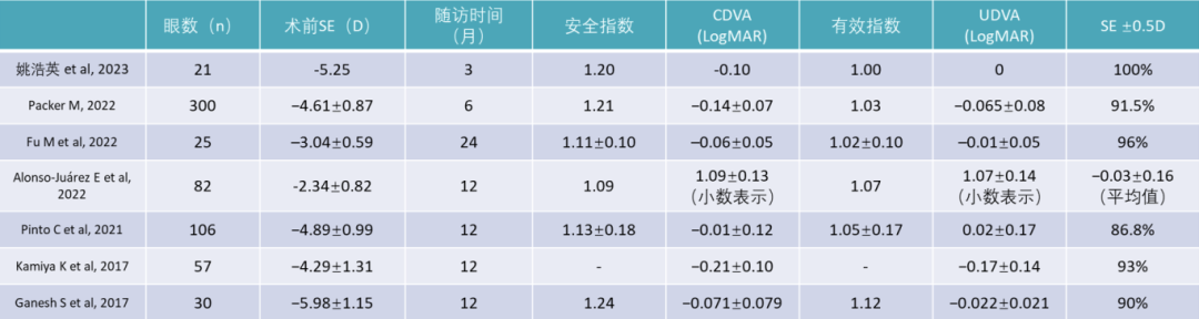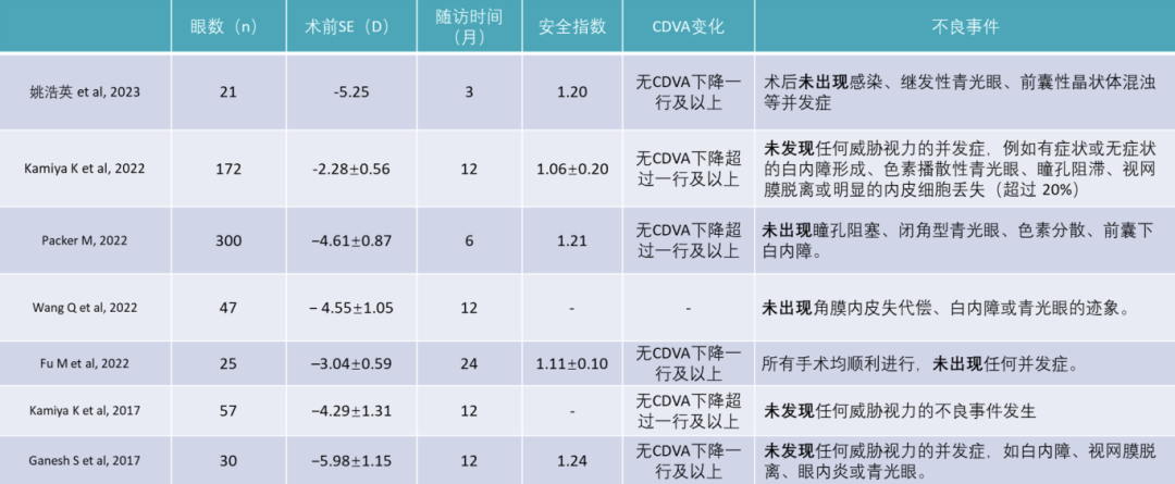 随着度数范围扩展和随访时间增加,越来越多的文献结果均证明了ICL的安全有效,促进了屈光指南中适用度数的不断拓宽。