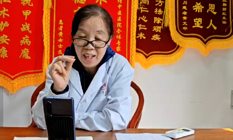 (韩丽红主任在药王传中医医院与患者远程问诊中)
