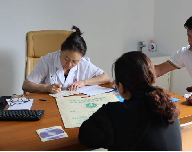(杨秀惠主任正在给患者开具处方药)