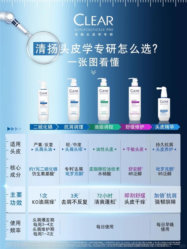 脂溢性头皮护理的关键在于从源头干预。以清扬二硫化硒洗发水为例,其背后是清扬品牌50年头皮学领域专研积淀,源自全球5大头皮实验室,并发表超过80篇学术文章。品牌于2025年推出的头皮学专研系列,,在自身产品中加入二硫化硒成分,旨在针对严重头屑问题,从细胞健康层面改善头皮状态。该系列产品获得200多名皮肤学专家参与使用与评估,并基于1100位皮肤学专家调研形成《头皮健康学专研白皮书》。