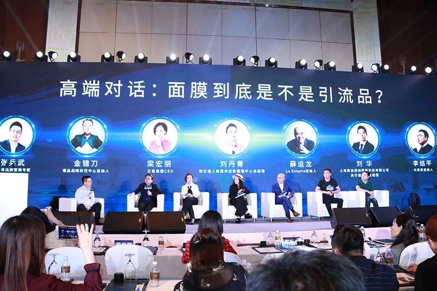 本次大会的高端论坛同样引起大家的高度关注。论坛由资深营销专家张兵武现场主持,爆品战略研究,创始人金错刀、贝豪集团CEO梁宏丽、娇兰佳人集团供应链管理,总经理刘丹青、La Estephe创始人薛运龙、上海黄金搭档网络科技有限公司董事&总经理刘华、北极泉创始人李结平等重量级嘉宾参与主题对话,针对“面膜是不是引流品”的议题,展开了激烈的探讨。