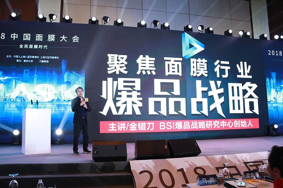 爆品战略研究,创始人金错刀以《聚焦面膜爆品战略》为题作了精彩的开篇主题演讲。一开始金错刀便抛出了“国产面膜如何与国际品牌PK”的问题,他认为面膜行业要PK过国际,,首先要有爆品思维。爆品就是一个单品一年能做到十亿销量,甚至百亿、千亿。面膜市场行业这么大,不能缺少爆品。