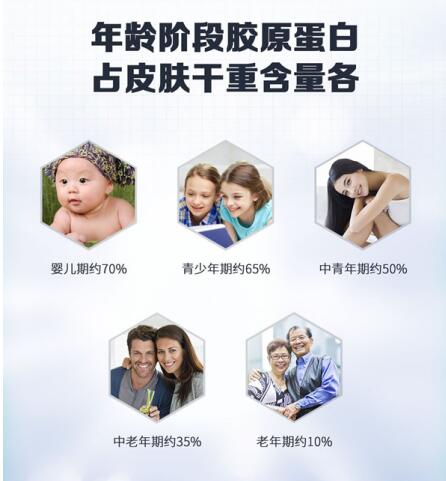 胶原蛋白作为一种高分子功能性蛋白质,在人体皮肤的真皮层中约占据80%,它在皮肤中构建了一张细致紧密的弹力网以支撑皮肤,因而是皮肤重要的组成部分。人体的自身可以产生胶原蛋白,但年龄增长之后,人体合成胶原蛋白的能力也会随之下降,当流失速度远大于合成速度之时,人体肌肤的衰老就会加剧。因此适当的补充胶原蛋白,确实可以起到延缓肌肤衰老的作用。