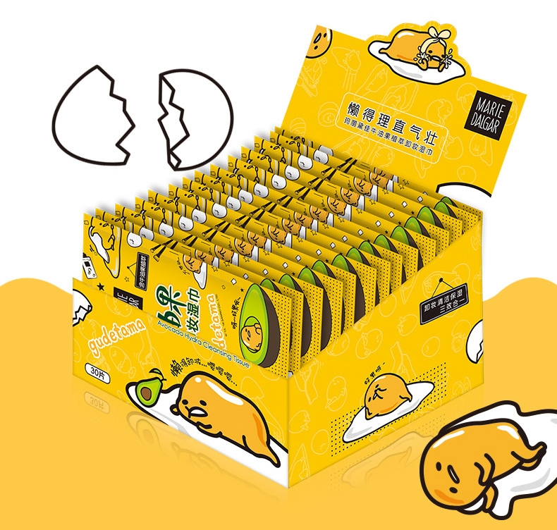 最近小编惊喜地发现,我们的国货之光玛丽黛佳,最近携手“慵懒界”一哥懒蛋蛋,在玛丽黛佳官方天猫旗舰店推出了惊喜合作款:牛油果植萃卸妆湿巾!慵懒呆萌的外形加上轻松方便的使用方法,瞬间击沉了万千少女的心。炎炎夏日,出门化妆麻烦,回家卸妆更麻烦!卸妆水、化妆棉、洗面奶……只想瘫成一颗懒蛋蛋,埋在沙发里不动弹。这时候,选择卸妆湿巾就对了!