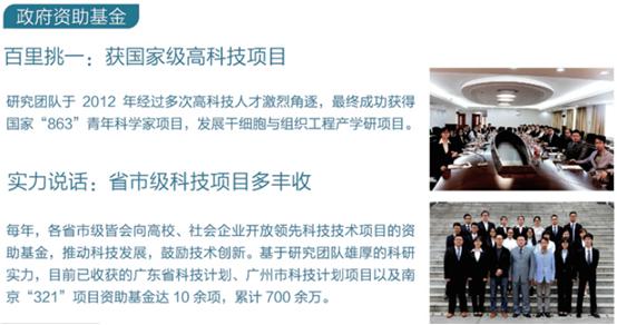 亮目生物科技研发人员均有暨南大学、中山大学、香港大学、美国伊利诺伊州立大学和芝加哥大学等,院校背景,在干细胞与组织工程、药理学、材料学等多个领域累积了多年经验,具有丰富的干细胞--再生修复产品的研发经验,相关技术已获国家(高技术研究发展计划863) 青年科学家项目等多项基金资助,又在此基础上入选南京“321”项目,累积投入科研经费数千万元,至今为止已有国家发明专利技术已申报12项,授权5项。