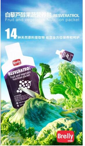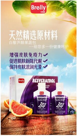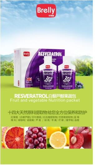 贝勒丽白藜芦醇果蔬营养包,它是Brelly推出的综合白藜芦醇及其它纯天然抗氧化物质而打造的纯天然健康产品。本产品的白藜芦醇取材于葡萄提取物,精选产地保证更优质、更集中的白藜芦醇成分。