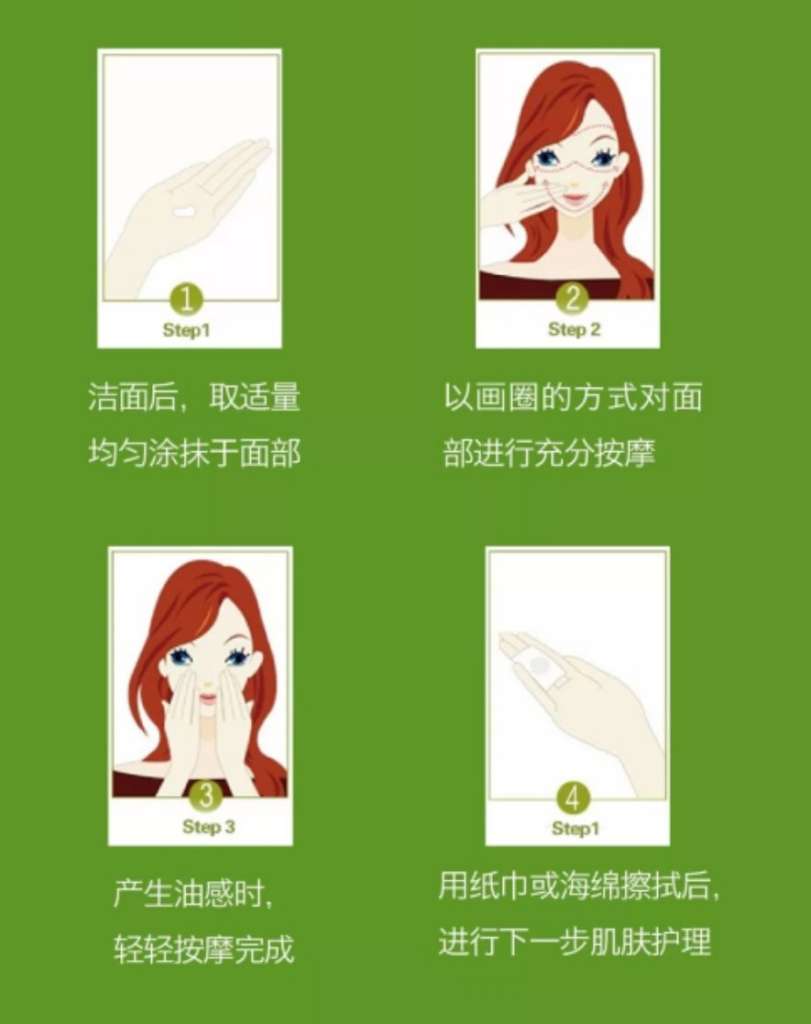 STEP 4用纸巾或海绵擦拭后,进行下一步肌肤护理