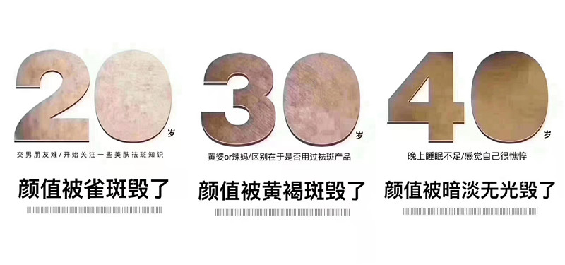 当你发现脸上出现一颗斑的时候,其实在我们皮肤基底层已经有一窝斑了。长斑时间久了,脸上容易出现混合斑,也就是说,长了雀斑就更容易长黄褐斑,长了黄褐斑更容易长老年斑,色斑一旦出现,衰老就会加速,由点成片,毁了整张脸,所以淡斑一定要趁早。