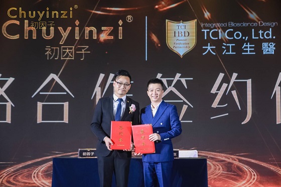 接下来,初因子与战略合作伙伴们举行了庄重的签约仪式,初因子和行业,供应商,大江生医及莹特丽达成战略合作,并在现场进行战略合作签约仪式。大江生医是中国台湾的大型生物科技企业,在生物科技领域拥有众多科研成果,而莹特丽则是意大利大型彩妆和护肤研发生产企业,多个国际一线大品牌生产护肤及彩妆产品。双方的战略合作,将联合各自的众多优势资源,共同探索益生菌科技护肤领域的新发现,新成果。
