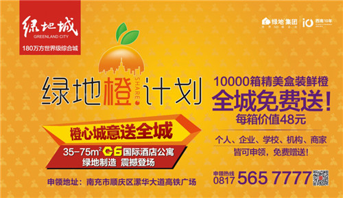快讯:绿地西南十年,感恩节特别推出绿地橙计划,万箱鲜橙全城免费送!领取券正火热申领中,凭此领取券即可获赠创意鲜橙一盒!