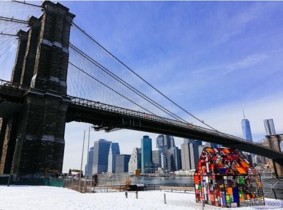 美国纽约,艺术家Tom Fruin设计的彩色有机玻璃房子,位于布鲁克林大桥公园。这个五彩缤纷的房子,由一千个大大小小尺寸不同的再生玻璃组成。