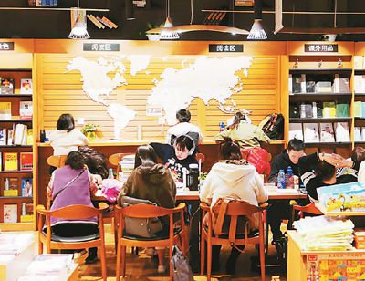 图为北京一处开在超市里的24小时免费书店,读者在安静地读书学习。