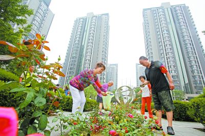 丰台丽湾社区新建的月季园让小区居民很欣喜。大伙儿相约共同周末大扫除,营造优美生活环境。
