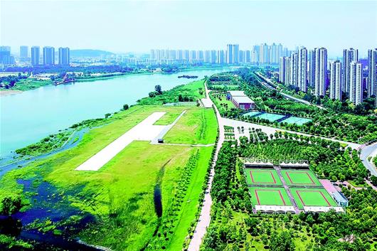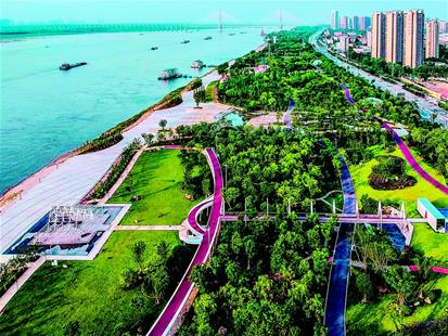 图为:整治改造后的武昌余家头水厂江滩与青山江滩无缝对接,成为一个集休闲娱乐防洪于一体的大型江滩公园。