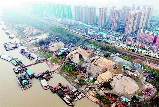 当年3月初,我省打响非法码头整治攻坚战,要求在5月30日前,沿江各市彻底整治长江干线477座非法码头。其中,武汉市整治非法码头122座。这些非法码头绝大部分是沿江堆砂场。它们阻塞河道、影响行洪,侵占岸线、破坏生态。武汉长江两岸沿线均有分布,白沙洲、鹦鹉洲、余家头等地扎堆成灾。位于市中心区域的余家头乱象整治更是被列入国家环保部挂牌督办案件,要求在2016年上半年整治完成。