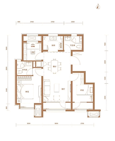 以89平方米三居户型为例,项目的三居做到了南北通透、双南卧、双明卫、全明格局,加上客厅三面朝南,达到9.5米的面宽,其中客厅面宽3.6米,比起限竞房中大多长进深的户型,大面宽保证了充裕的采光,提升居住舒适度。此外,项目还有4.5平方米(飘窗+设备平台)的赠送面积,得房率在83%左右。