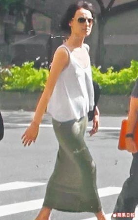 她当天穿著白色无袖背心搭配墨绿色长裙,身材清瘦、上围平坦,完全看不出是3个孩子的妈。在微风吹拂下,衣物紧贴身躯,胸前大剌剌挺出2颗相思豆,加上时髦的墨镜,整个人很有外国女星style。