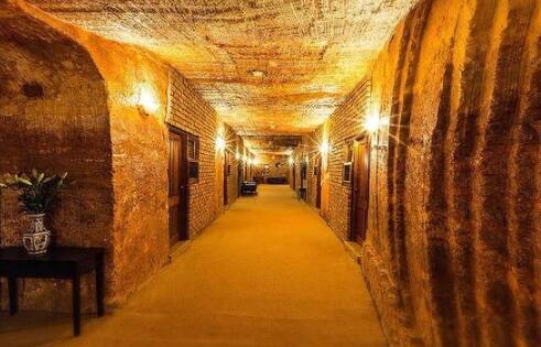 澳大利亚库柏派蒂地下山洞汽车旅馆。这间地下山洞旅馆建于20世纪60年代中期,由澳大利亚当地的一位矿工所建。经过多年多次翻修,这间旅馆中的客房已经改造成了家庭旅馆。该旅馆在1993开始迎客,独特的天然砂岩墙面给人一种回归自然地感觉,每间客房均提供无线上网和空调。