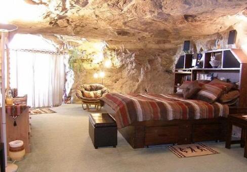 美国新墨西哥州克科佩里洞。山洞旅舍位于美国新墨西哥的法明顿梅萨维德国家公园附近。该旅舍位于悬崖下方,相当于7层楼的高度。该洞穴已有6500万年的历史,位于拉普拉塔河上方84米处。旅舍中配备有西南地区风格的家具,包括冷热水,带有微波炉及洗碗机的厨房、吹风机、浴室以及磨石浴缸。