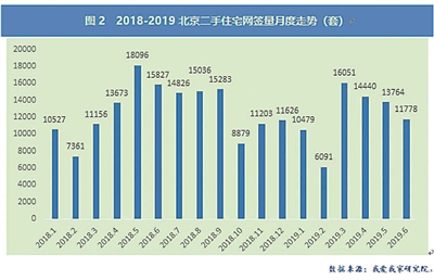 我爱我家研究院和麦田房产等中介机构根据住建委网签数据统计显示,2019年上半年北京二手住宅网签量为72601套,月均网签量约12000套。环比2018年下半年下降5.42%,同比2018年上半年下降5.27%,较2018年上、下半年减少约4000套。单看上半年数据,今年上半年的网签量创下了2014年以来的,。