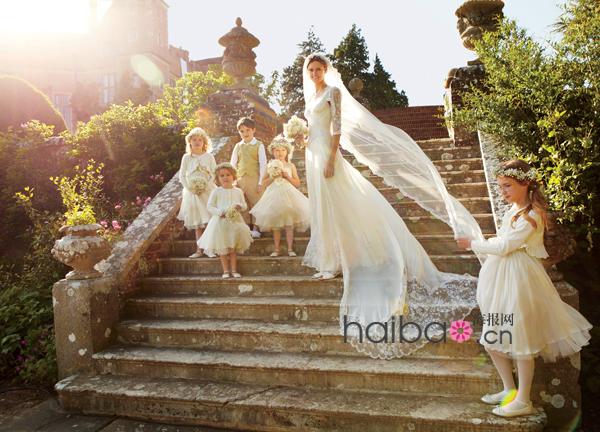 身穿坦波丽伦敦(Temperley London) 婚纱的新娘Jacquetta Wheeler和花童们