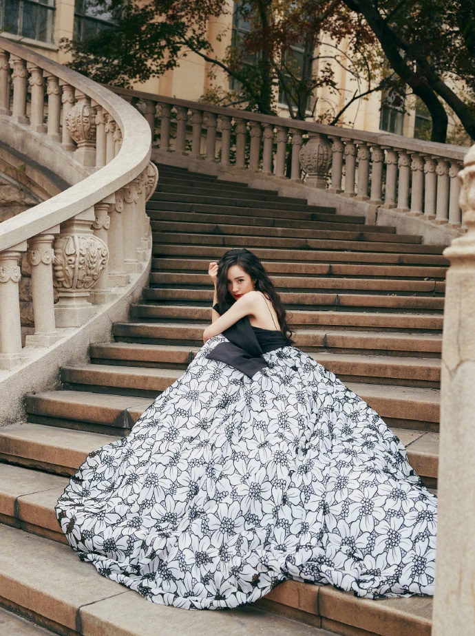 杨幂工作室在微博分享了一组写真图,照片中杨幂穿着大蝴蝶结印花吊带长裙,黑发红唇,十分性感。身后的长楼梯背景是《小时代》的拍摄地,粉丝纷纷评论:“突如其来的回忆杀!”