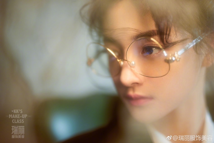 周洁琼杂志秀眼镜造型五官精致 穿露肩白纱裙仙气十足