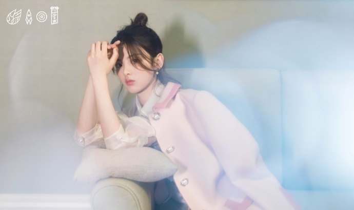 杨超越穿粉色套装娴静优雅 扎丸子头显活泼浪漫