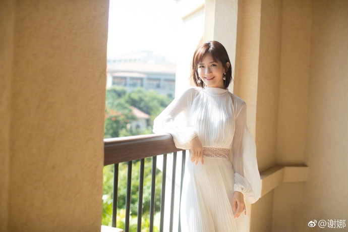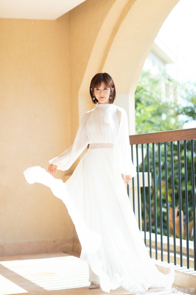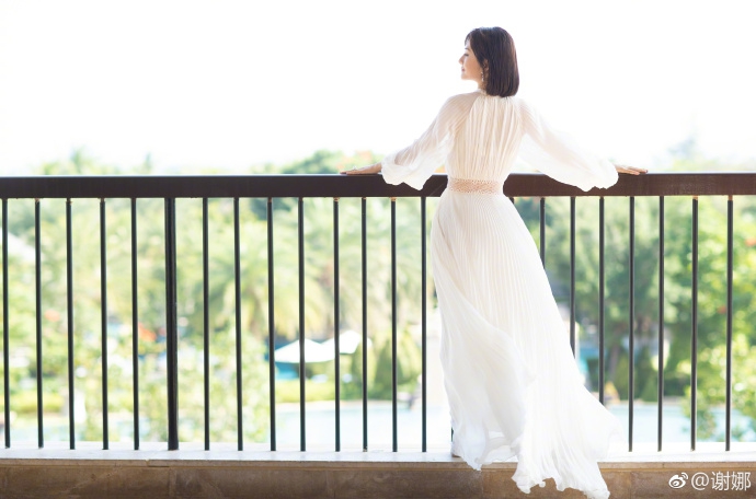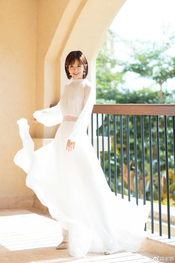 谢娜穿白色纱裙大秀好身材 沐浴阳光裙袂飞扬心情佳