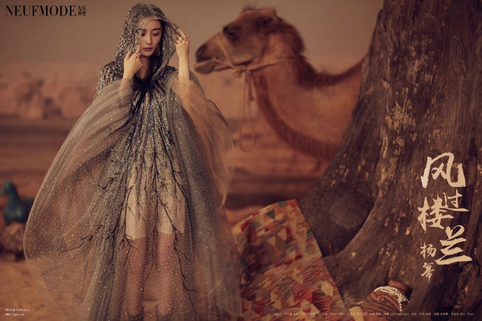杨幂最新沙漠场景杂志照曝光 民族风搭骆驼吸睛楼兰风十足
