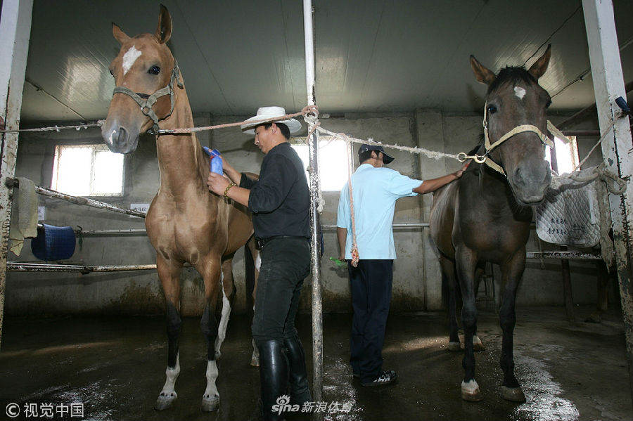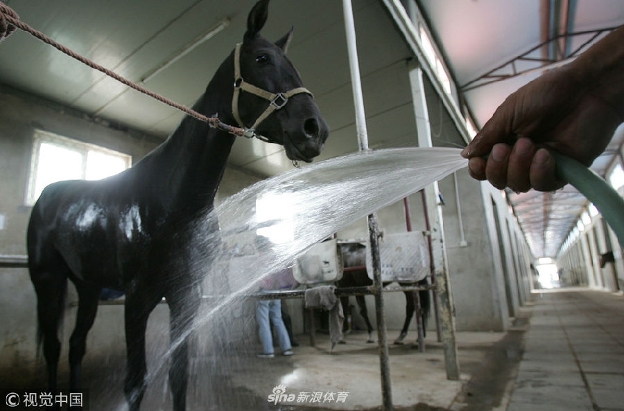 16平米超大马房、国外进口高价饲料、,两次以上的刷洗……这些有别于其他马的特殊待遇显示着汗血宝马的珍贵。三匹汗血宝马来北京两个多月了,在北京燕龙国际马术俱乐部,它们逐步适应着北京的生活。
