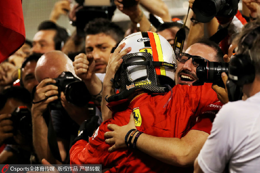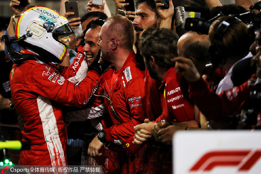 F1巴林分站正赛结束了精彩的争夺,杆位发车的法拉利车手维特尔惊险拿下了又一个分站,,梅赛德斯的博塔斯及汉密尔顿分别收获了第二及第三位,而法拉利的莱科宁因为进站时换胎失误而退出比赛。