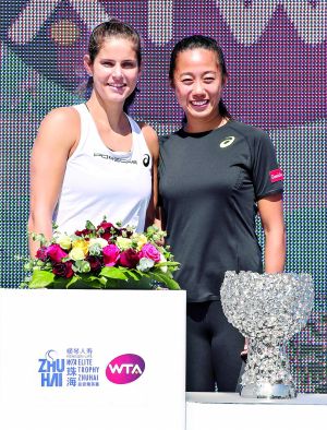 WTA珠海赛举行抽签仪式,张帅(图右)和格尔格斯出席。陆明杰 摄