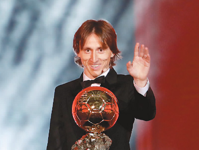 12月3日,在《法国足球》杂志举办的“金球奖”颁奖典礼上,效力于西甲,马德里队的克罗地亚球员莫德里奇获得2018年“金球奖”。
