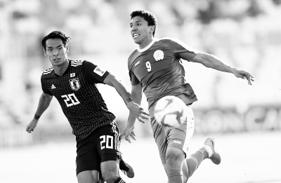 日本队和土库曼斯坦队的球员在比赛中拼抢。京报体育全媒体特派记者 刘平摄