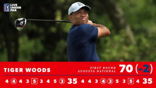 首轮比赛,伍兹共抓到4只小鸟,包括在13、14号洞的背靠背小鸟球,这也让他长时间处于并列领先,直到在17号洞吞下全天第2个柏忌才滑落下来。最终,伍兹交出70杆(-2),排在并列第11名。