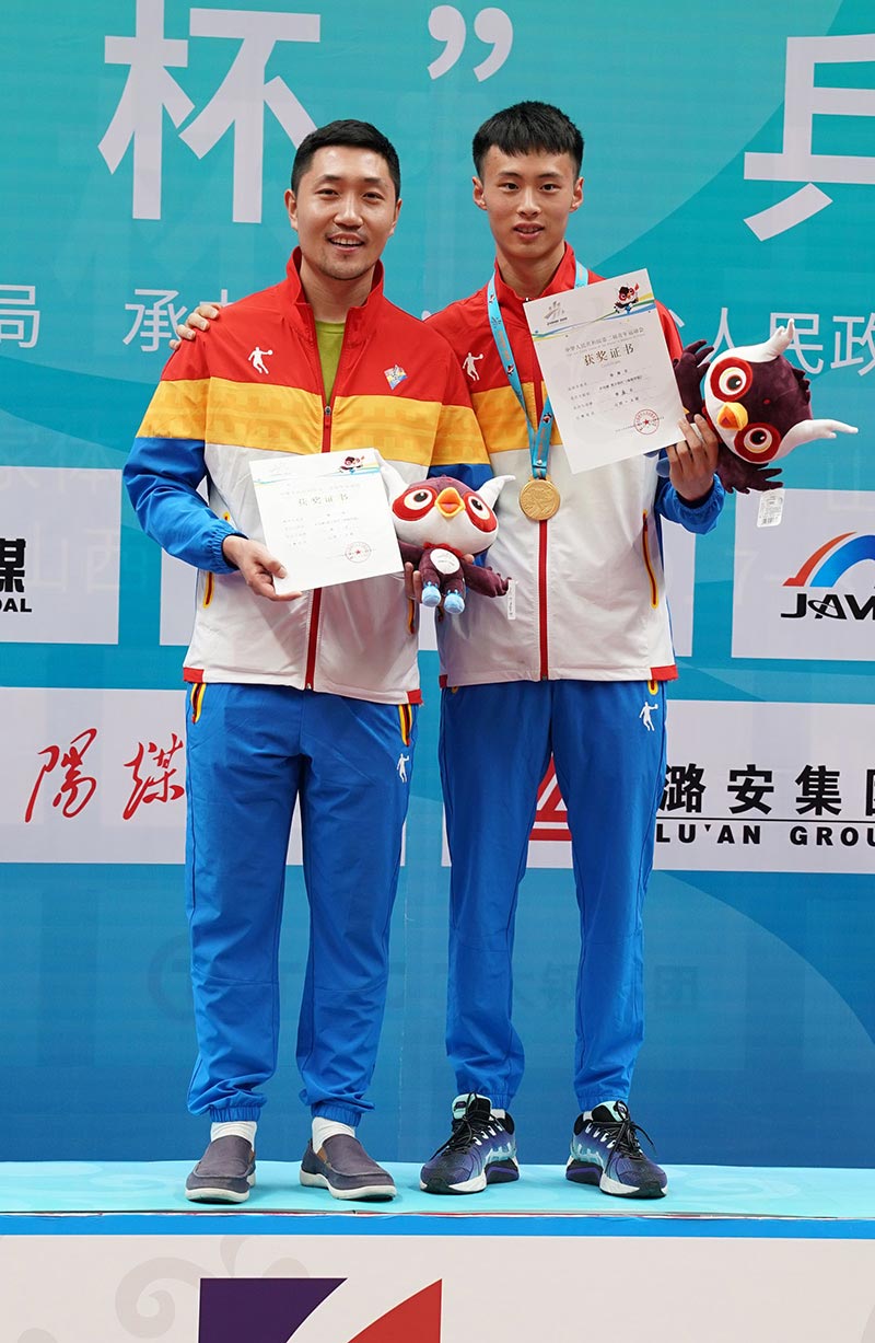 徐海东(右)及其教练翟一鸣登上领奖台(人民网 赵欣悦摄)